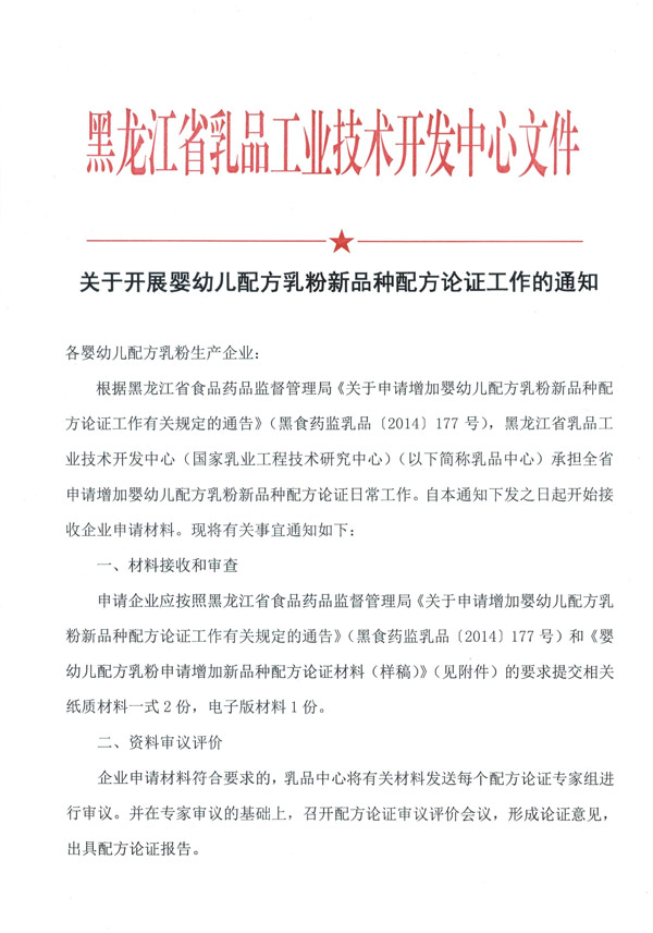 關于開展嬰幼兒配方乳粉新品種配方論證工作的通知