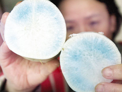 網(wǎng)上流傳更多的說(shuō)法是:藍(lán)心蘿卜是商家為了讓蘿卜能長(zhǎng)期存放,特意打的保鮮劑。藍(lán)心蘿卜有毒性,對(duì)人體有害。對(duì)于這種說(shuō)法,范志紅表示,這幾乎沒(méi)有可能性。一方面由于人工染色情況下,人工色素顏色比較穩(wěn)定,一般遇到酸堿都不會(huì)變色;另一方面是由于蘿卜本身的價(jià)格很便宜,而添加保鮮劑需要大量的人工成本,一天花幾百塊錢的人工成本去加保鮮劑,商家“犯不上”。