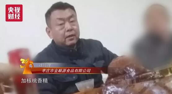 山東棗莊市金順源食品有限公司 徐經理:“主要提的味還是在香精上面,加核桃香精,還要加香精,臨打料的時候加。”