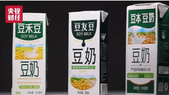 這是一些企業跟風模仿某品牌的豆奶產品,生產出的豆禾豆豆奶、豆中豆豆奶、豆友豆豆奶、豆本豆奶。這些豆奶產品,雖然在包裝上也用大字突出了豆奶字樣,但真正的產品類型卻并非豆奶,而是復合蛋白飲品、調制豆奶飲料、風味飲品等。